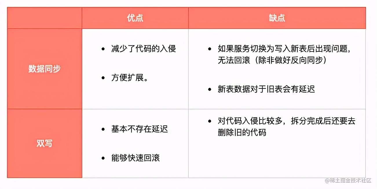 一般新表和旧表直接可以采用 数据同步 或者 双写的方式进行处理,两种方式有各自的优缺点。